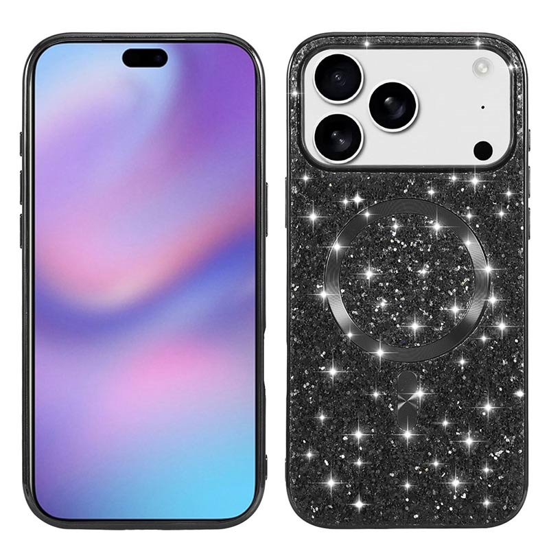 Capa híbrida com brilhantes galvanizados para iPhone 17 Pro - Compatível com MagSafe - Estrutura em TPU galvanizado e contracapa em PC