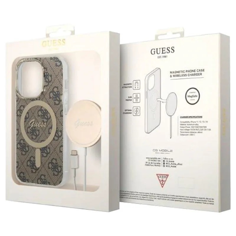 Capa Hibrida & Carregador Magnético Sem Fio Guess 4G Edition Bundle Pack para iPhone 14 Pro Max - 20W