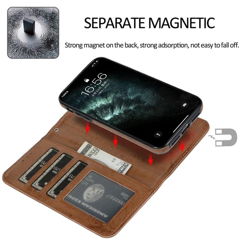 Capa-carteira vintage 2 em 1 com tampa magnética removível para iPhone 11