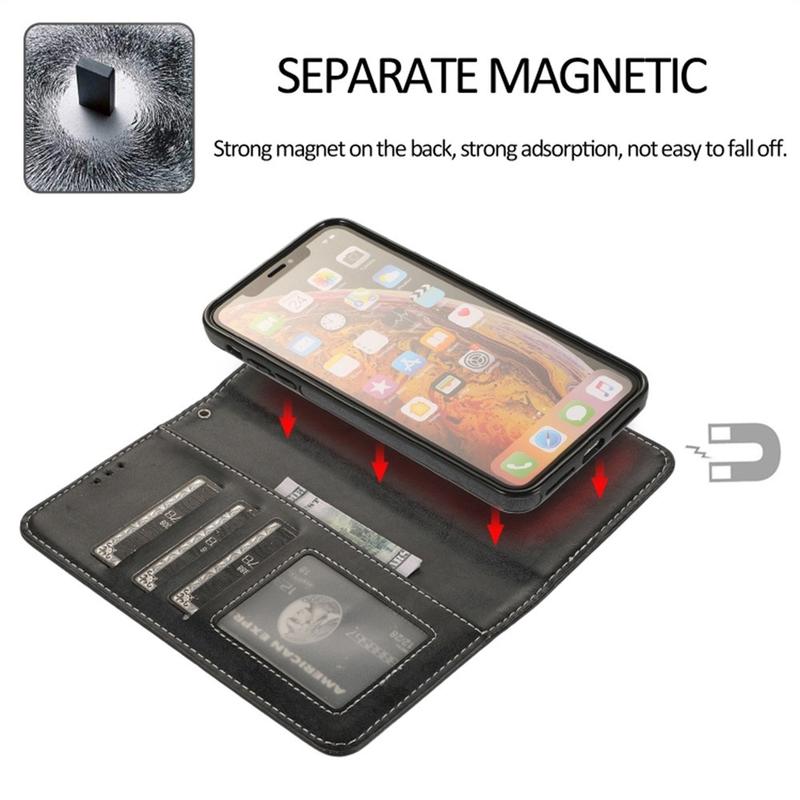 Capa-carteira vintage 2 em 1 com tampa magnética removível para iPhone XS Max