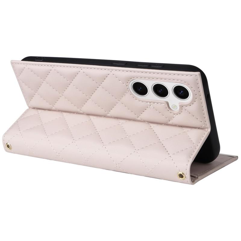 Proteja o seu Samsung Galaxy S24 com esta luxuosa capa de carteira acolchoada. Construída com material TPU revestido com couro PU, esta capa é resistente a riscos e anti-impressão digital, mantendo o seu telemóvel com estilo e elegância. A linha de costura forma um padrão de grelha em losango, dando um toque elegante e bonito à capa. A borda elevada da câmara e do ecrã oferece uma proteção eficaz contra riscos, enquanto os recortes precisos permitem o acesso total a todos os botões, portas e outras funcionalidades. O design em forma de carteira permite guardar facilmente cartões e dinheiro essenciais, e as ventosas incluídas podem ser utilizadas como suporte para uma utilização mãos-livres. Com proteção adicional contra riscos, impactos, quedas e danos diários, esta capa também inclui uma correia de ombro e uma correia de pulso para maior comodidade.