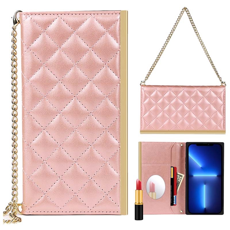 Uma bolsa tipo carteira e uma mala de mão numa só! Graças a uma alça elegante, apresentamos uma bolsa estilo carteira singular para o seu iPhone 13 Pro, que pode usar como uma mala de mão. Esta bolsa vem com um espelho no interior que qualquer senhora pode usar para se maquilhar. Além disso, protege o seu iPhone 13 Pro contra o desgaste diário, arranhões, marcas e riscos. O seu iPhone 13 Pro terá uma capa que está na moda, mas ainda assim é durável.
