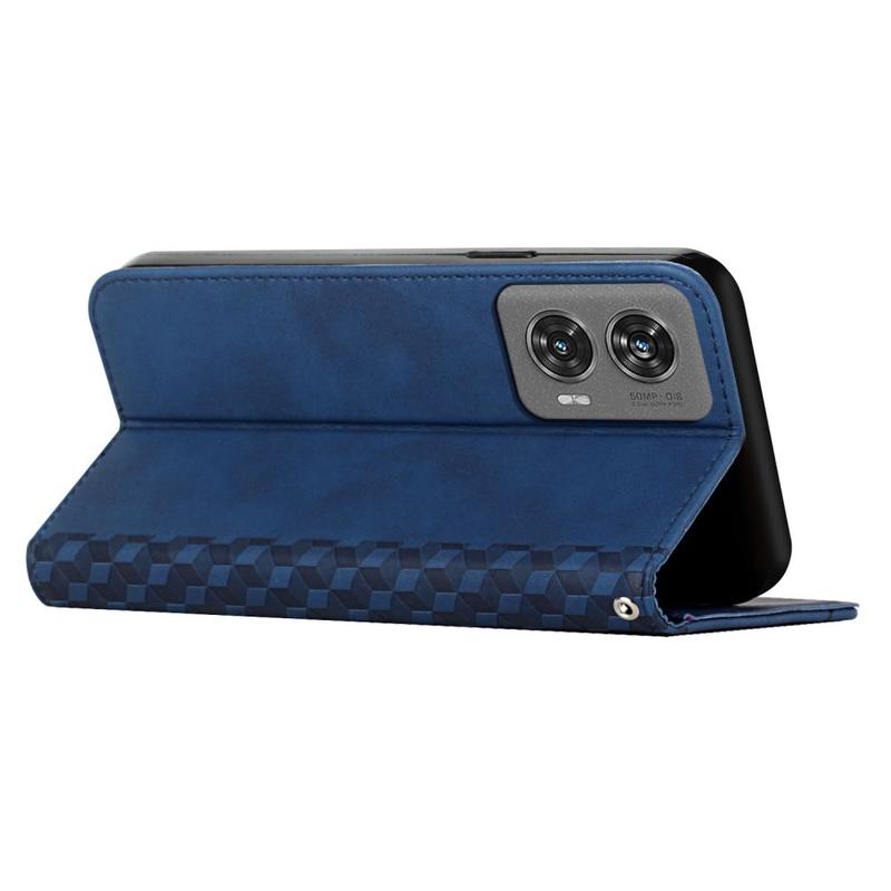 Proteja o seu Motorola Edge 50 Fusion, Motorola G96 com estilo com esta capa premium em poliuretano com padrão de losangos, concebida para durabilidade e comodidade. Com um acabamento elegante, esta capa está equipada com um fecho magnético para manter o seu telemóvel seguro, oferecendo um acesso rápido. A função de suporte incorporada permite-lhe desfrutar de uma visualização em modo mãos-livres, tornando-a ideal para transmissões, videochamadas ou navegação. O elegante design em pele PU não só acrescenta sofisticação, como também proporciona uma proteção fiável contra riscos, choques e quedas, garantindo que o seu dispositivo se mantém em perfeitas condições.
