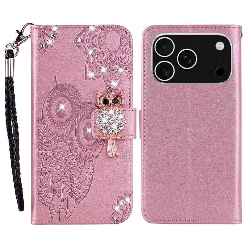 - Capa de carteira de coruja com strass para iPhone 17 Pro Max