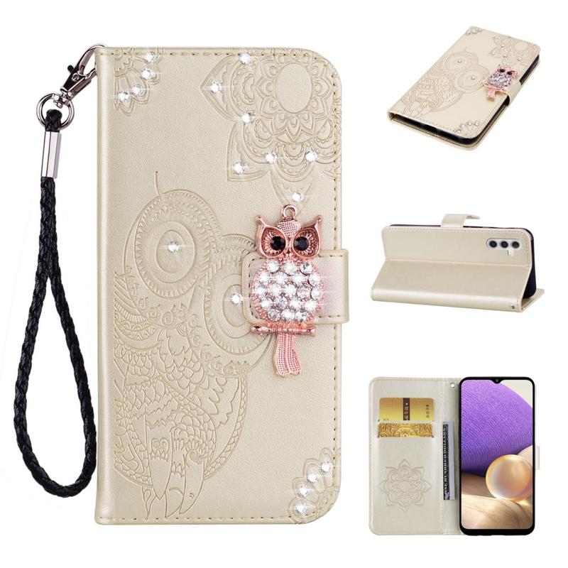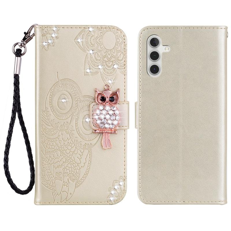 - Capa de carteira de coruja com strass para Samsung Galaxy S26