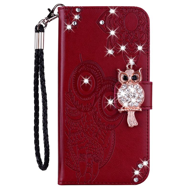 Capa de carteira com strass de coruja para Xiaomi Redmi Note 13