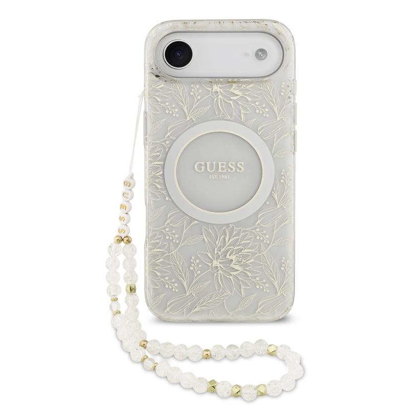 Capa com alça de pérola Guess IML Flowers Allover Electro para iPhone Air - Compatível com MagSafe