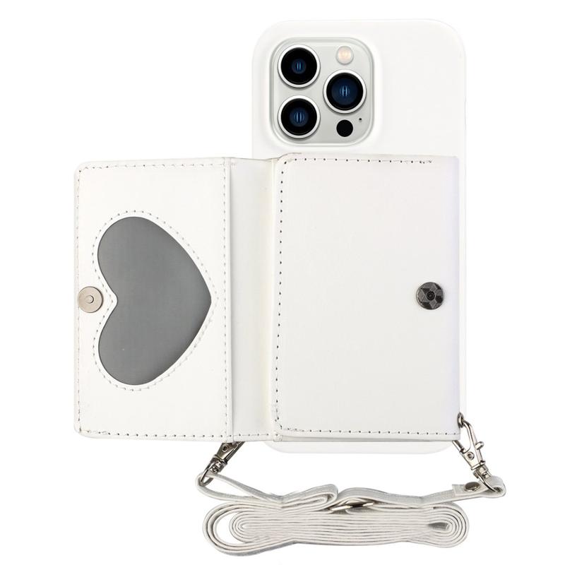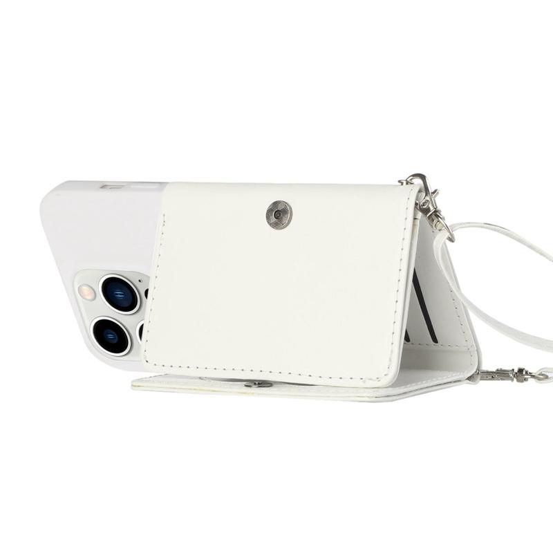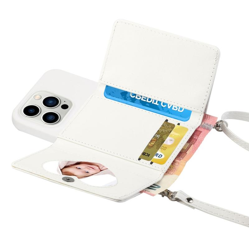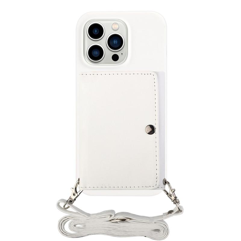 Carteira de couro PU capa de TPU para iPhone 14 Pro, capa de telefone anti-riscos com suporte e alça de ombro