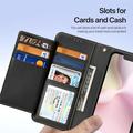 - Utilize a carteira amovível para manter os seus cartões e dinheiro organizados em viagem