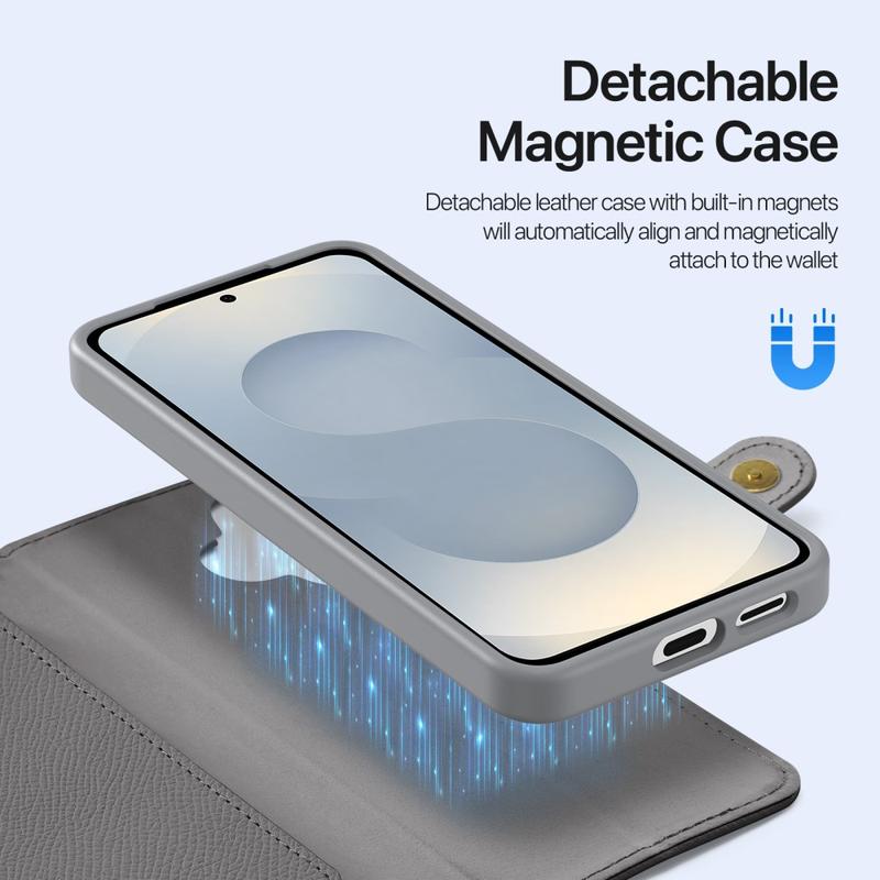 Capa de couro para carteira Dux Ducis Lawa com tampa magnética amovível para Samsung Galaxy S26+ - Compatível com MagSafe