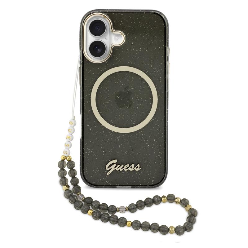 Capa MagSafe de alça Guess IML Glitter Script para iPhone 17 - Capa traseira brilhante com alça de pulso, proteção PC+TPU, compatível com MagSafe