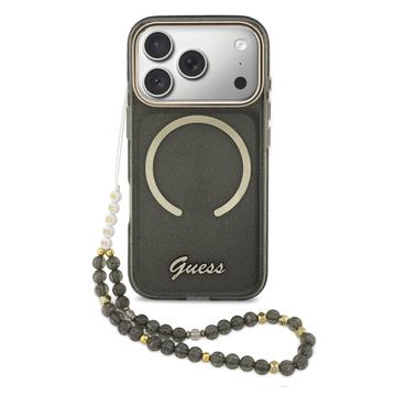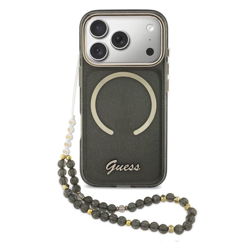 Capa MagSafe de alça Guess IML Glitter Script para iPhone 17 Pro - Capa traseira brilhante com alça de pulso, proteção PC+TPU, compatível com MagSafe