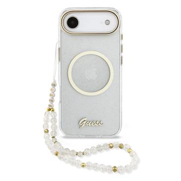 Capa MagSafe de alça Guess IML Glitter Script para iPhone Air - Capa traseira brilhante com alça de pulso, proteção PC+TPU, compatível com MagSafe