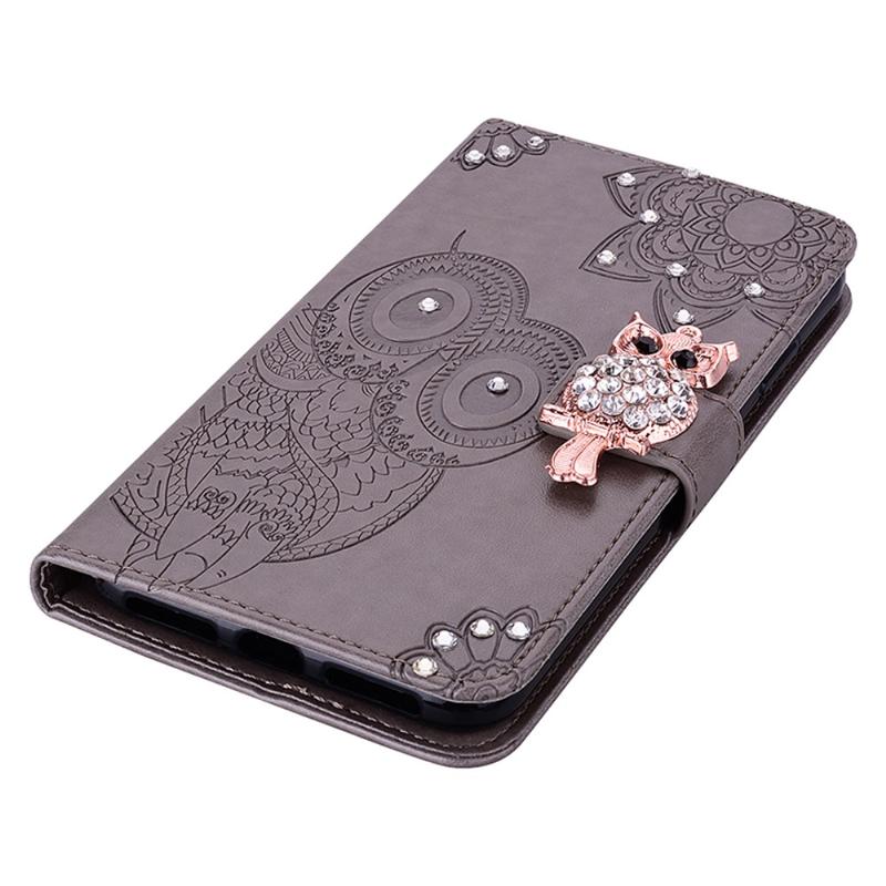 - Capa de carteira de coruja com strass para Samsung Galaxy A25