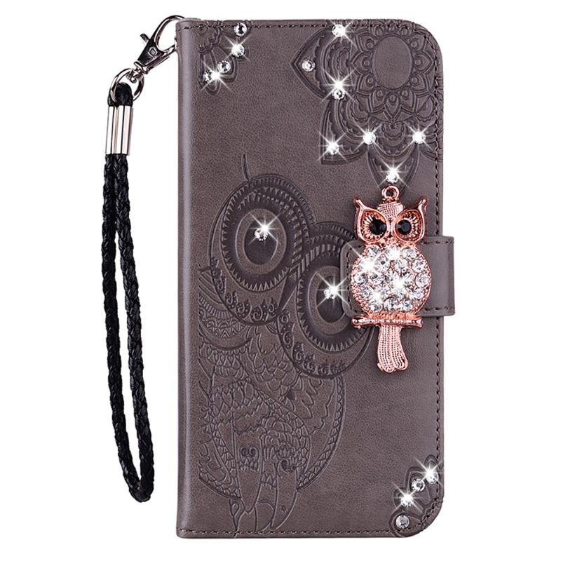 Capa de carteira com strass de coruja para Samsung Galaxy A25