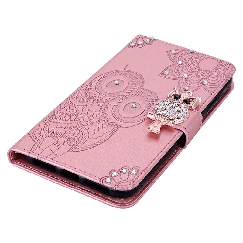 - Capa de carteira de coruja com strass para Samsung Galaxy A25