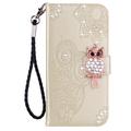 Capa de carteira com strass de coruja para Google Pixel 8 Pro