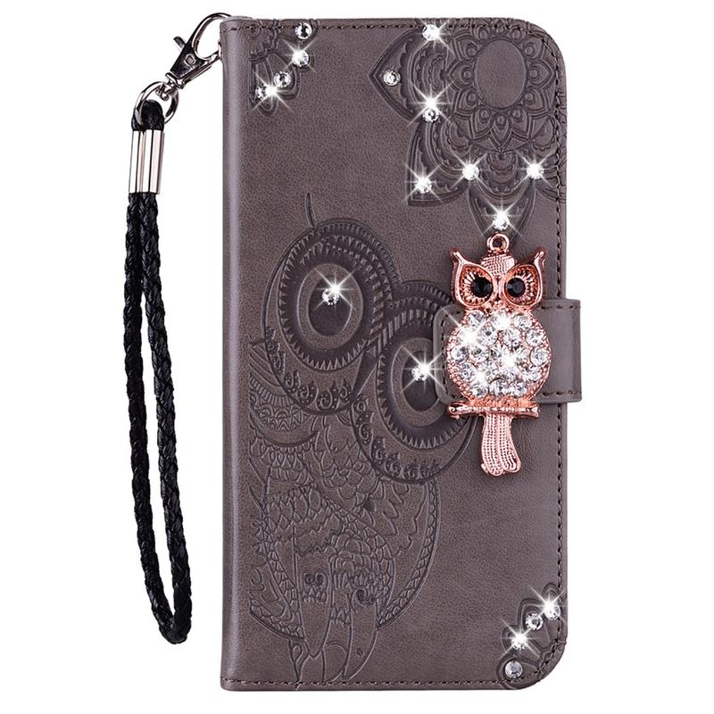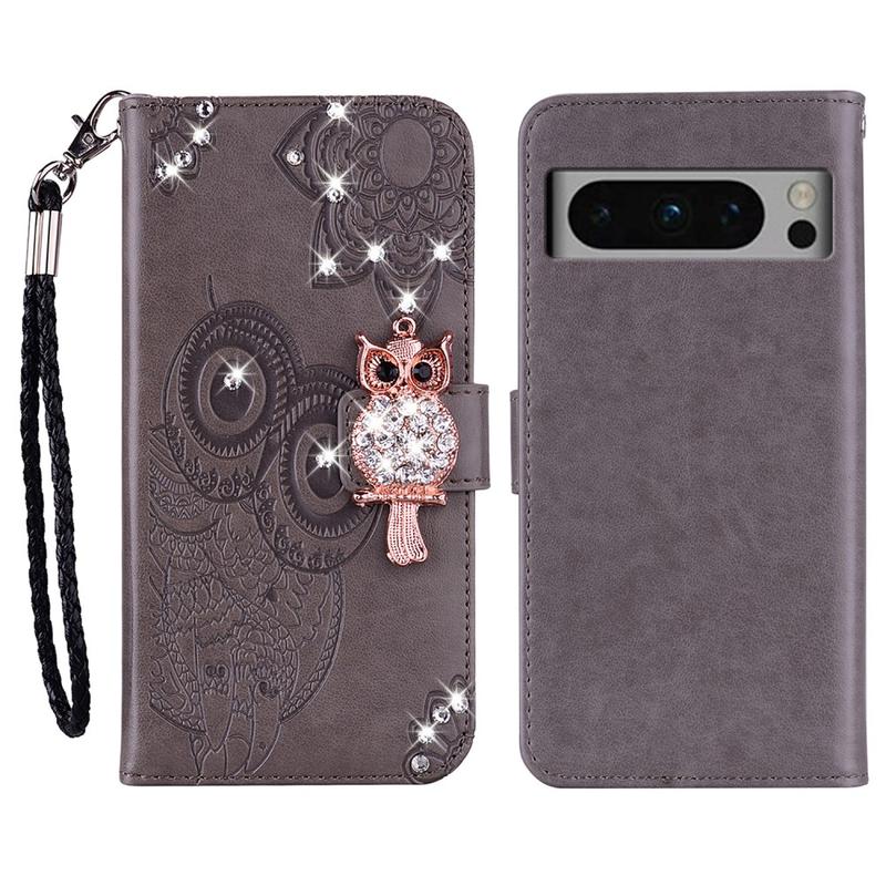 Capa de carteira com strass de coruja para Google Pixel 8 Pro