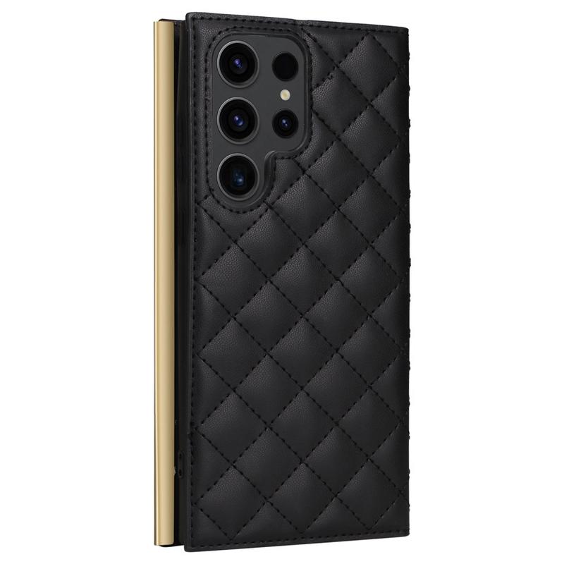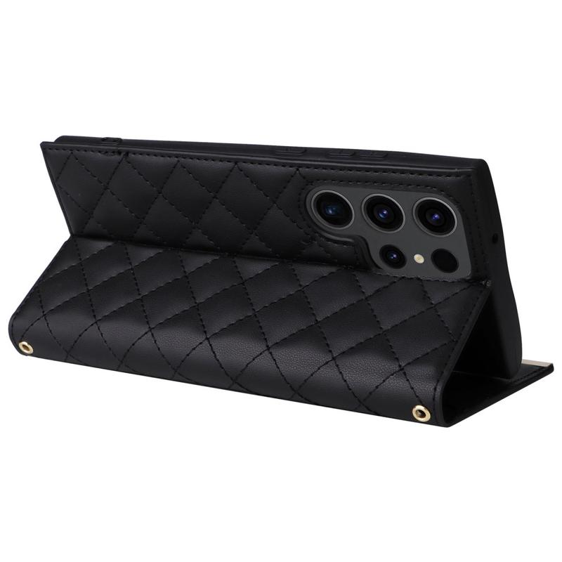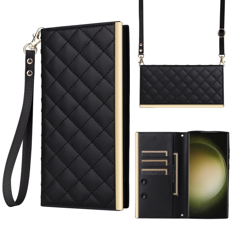 Proteja o seu Samsung Galaxy S23 Ultra com esta luxuosa capa de carteira acolchoada. Construída com material TPU revestido com couro PU, esta capa é resistente a riscos e anti-impressão digital, mantendo o seu telemóvel com estilo e elegância. A linha de costura forma um padrão de grelha em losango, dando um toque elegante e bonito à capa. A borda elevada da câmara e do ecrã oferece uma proteção eficaz contra riscos, enquanto os recortes precisos permitem o acesso total a todos os botões, portas e outras funcionalidades. O design em forma de carteira permite guardar facilmente cartões e dinheiro essenciais, e as ventosas incluídas podem ser utilizadas como suporte para uma utilização mãos-livres. Com proteção adicional contra riscos, impactos, quedas e danos diários, esta capa também inclui uma correia de ombro e uma correia de pulso para maior comodidade.