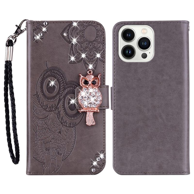- Capa de carteira de coruja com strass para iPhone 16 Pro