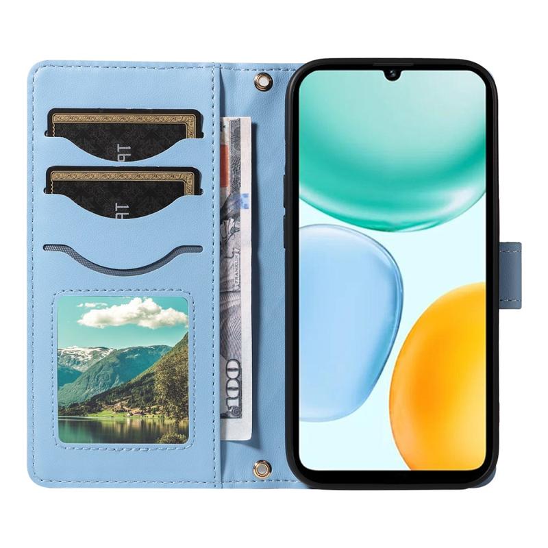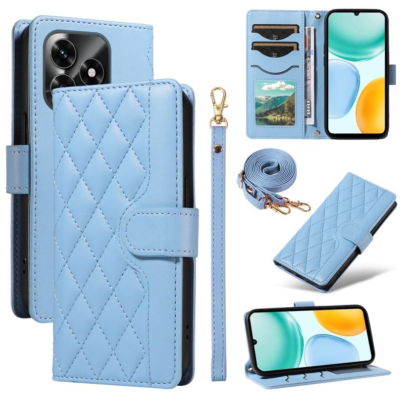 Capa para carteira acolchoada de luxo com alça de ombro e de pulso para Honor X5c Plus - Capa protetora com padrão de losango