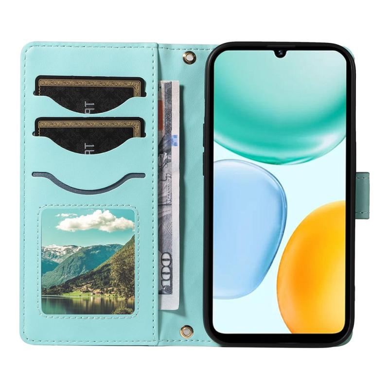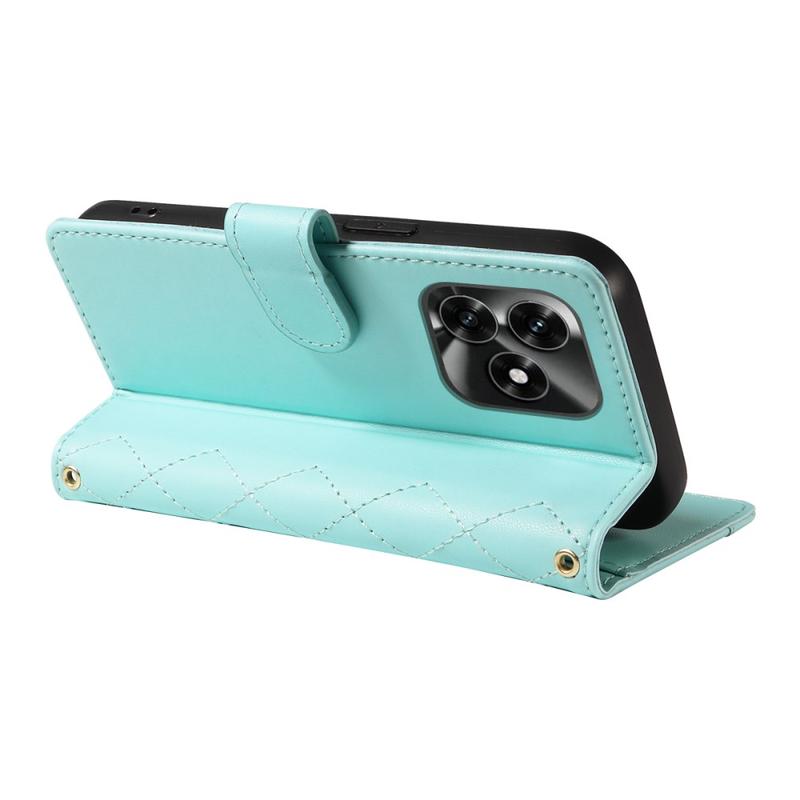 Capa para carteira acolchoada de luxo com alça de ombro e de pulso para Honor X5c Plus - Capa protetora com padrão de losango