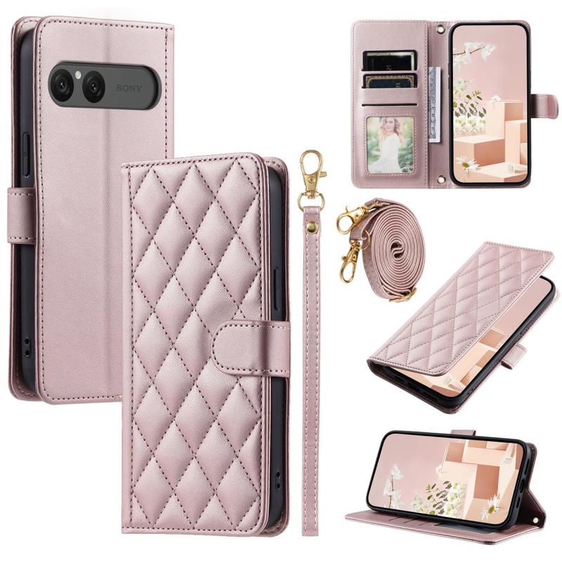Capa para carteira acolchoada de luxo com alça de ombro e de pulso para Sony Xperia 10 VII - Capa protetora com padrão de losango