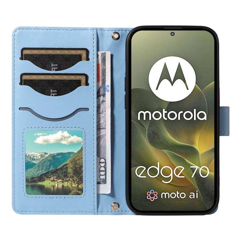 Capa para carteira acolchoada de luxo com alça de ombro e de pulso para Motorola Edge 70 - Capa protetora com padrão de losango