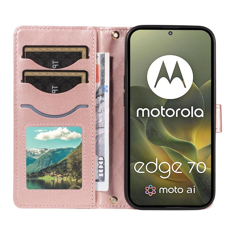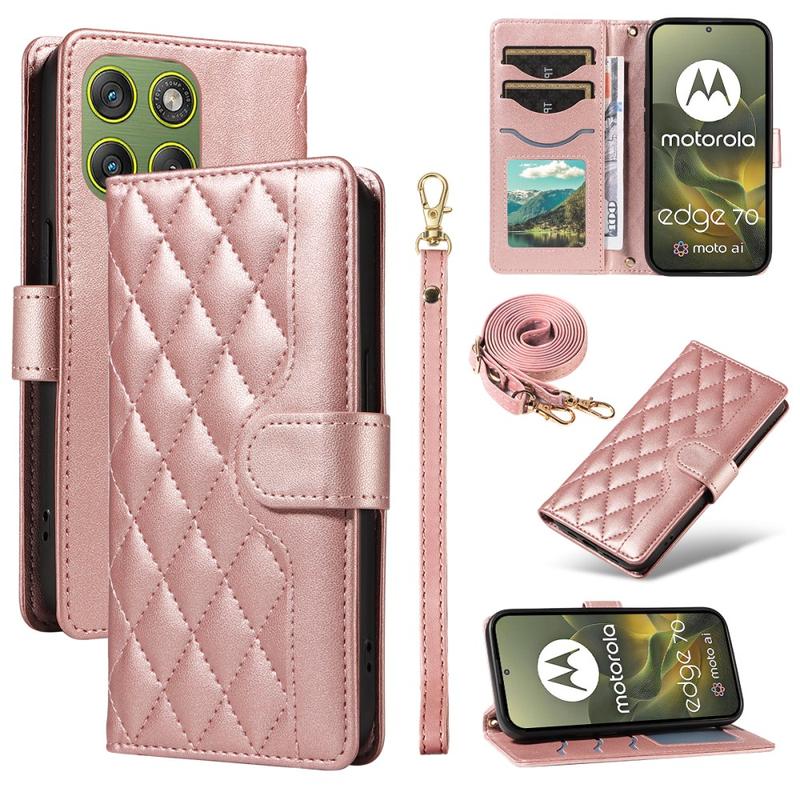 Capa para carteira acolchoada de luxo com alça de ombro e de pulso para Motorola Edge 70 - Capa protetora com padrão de losango