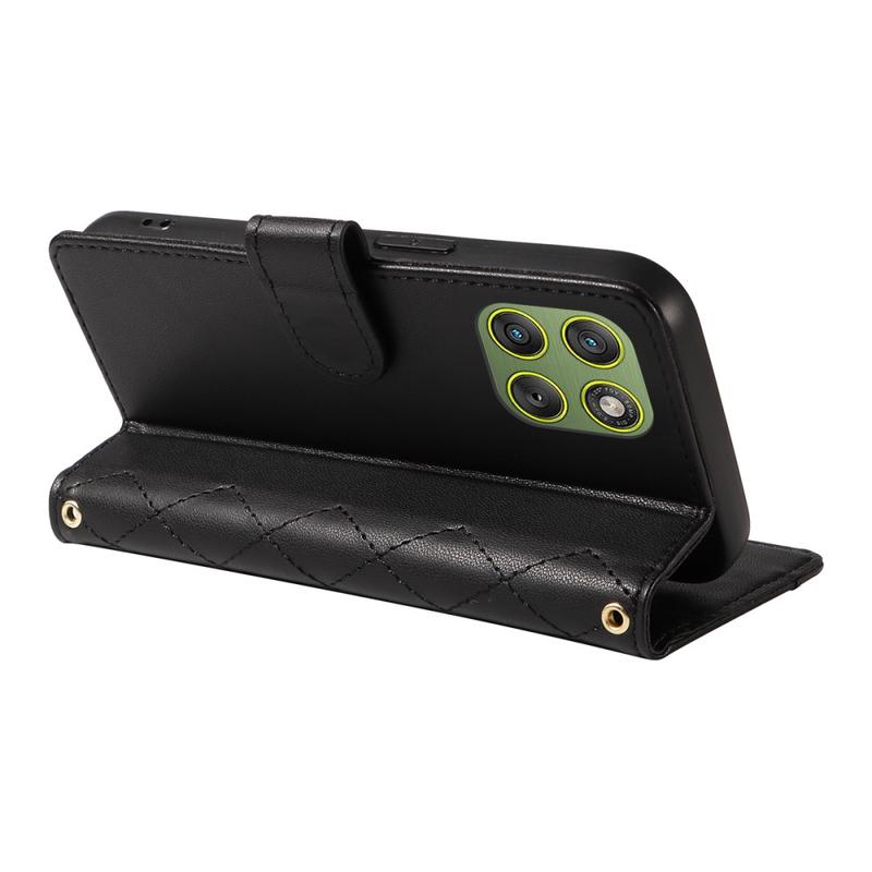 Capa para carteira acolchoada de luxo com alça de ombro e de pulso para Motorola Edge 70 - Capa protetora com padrão de losango