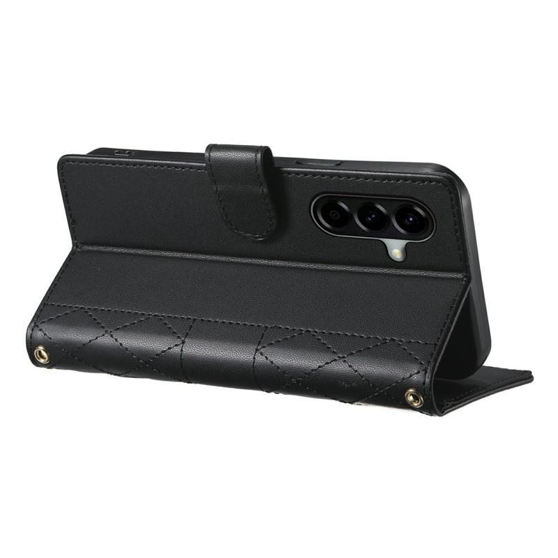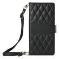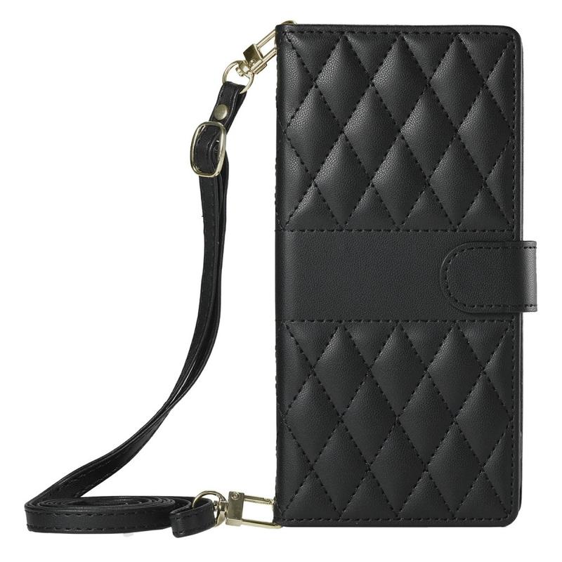 Capa para carteira acolchoada de luxo com alça de ombro e de pulso para Samsung Galaxy A57 - Capa protetora com padrão de losango