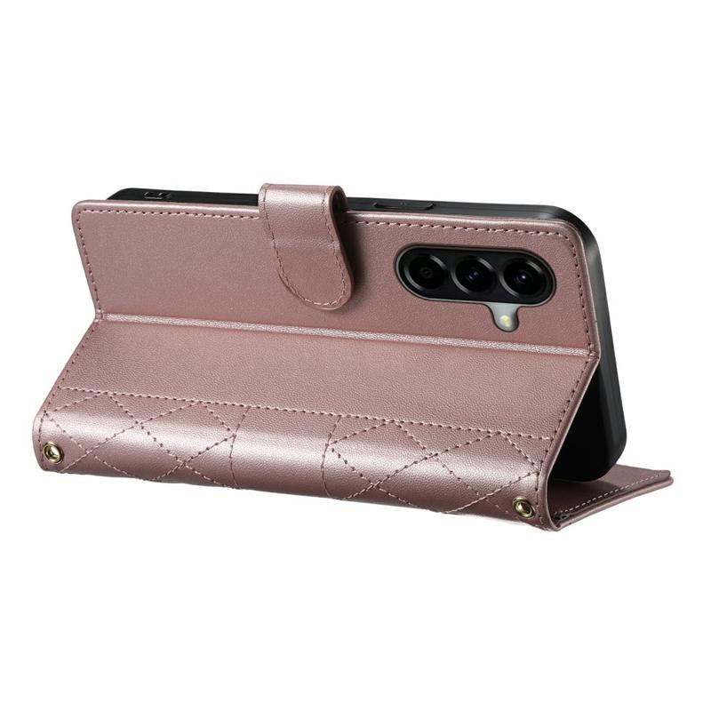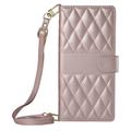 Capa para carteira acolchoada de luxo com alça de ombro e de pulso para Samsung Galaxy A37 - Capa protetora com padrão de losango
