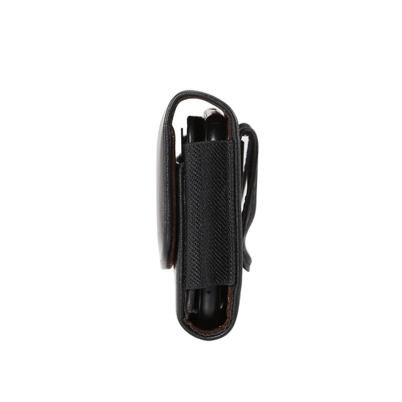 - Presilha para o cinto + fecho de pressão metálico para uma fixação segura ao cinto ou à cintura