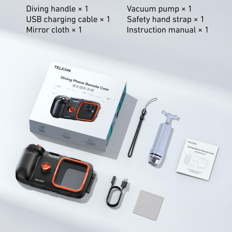 Concebida para profundidades até 20 metros (65,6 pés), a caixa TELESIN proporciona uma impermeabilização fiável para mergulho, snorkeling e fotografia subaquática. Foi concebida para resistir a fugas e proteger o seu dispositivo em ambientes extremos.