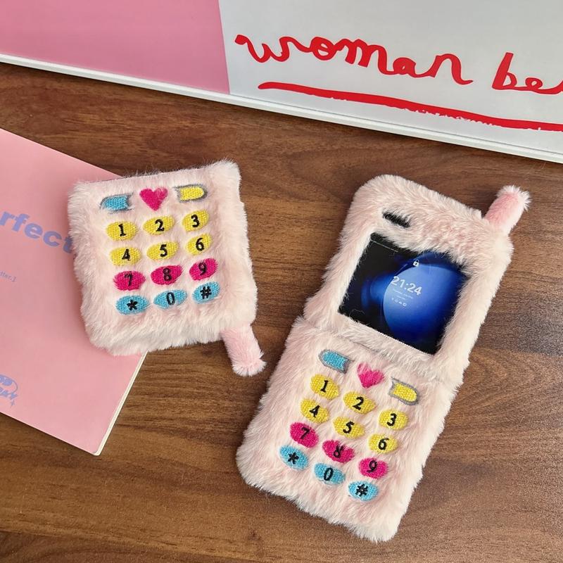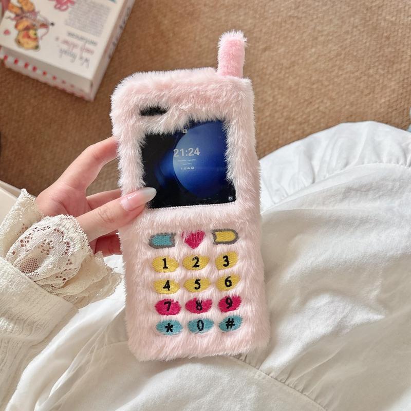 Capa de pelúcia retro para Samsung Galaxy Z Flip6, Galaxy Z Flip7 FE com teclas de marcação bordadas
