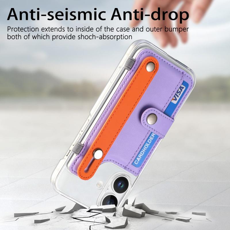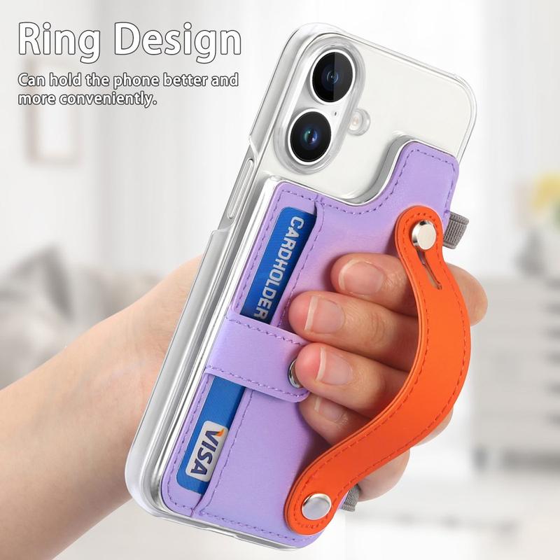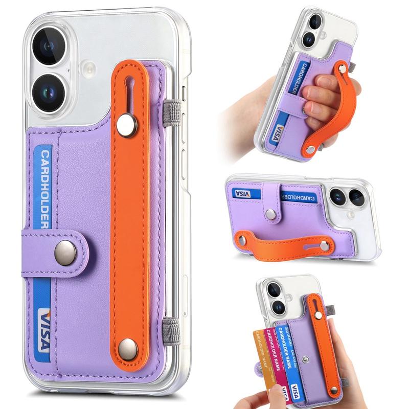 Capa de plástico CY1 com ranhura para cartões, pulseira e suporte para o iPhone 16
