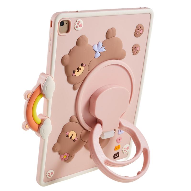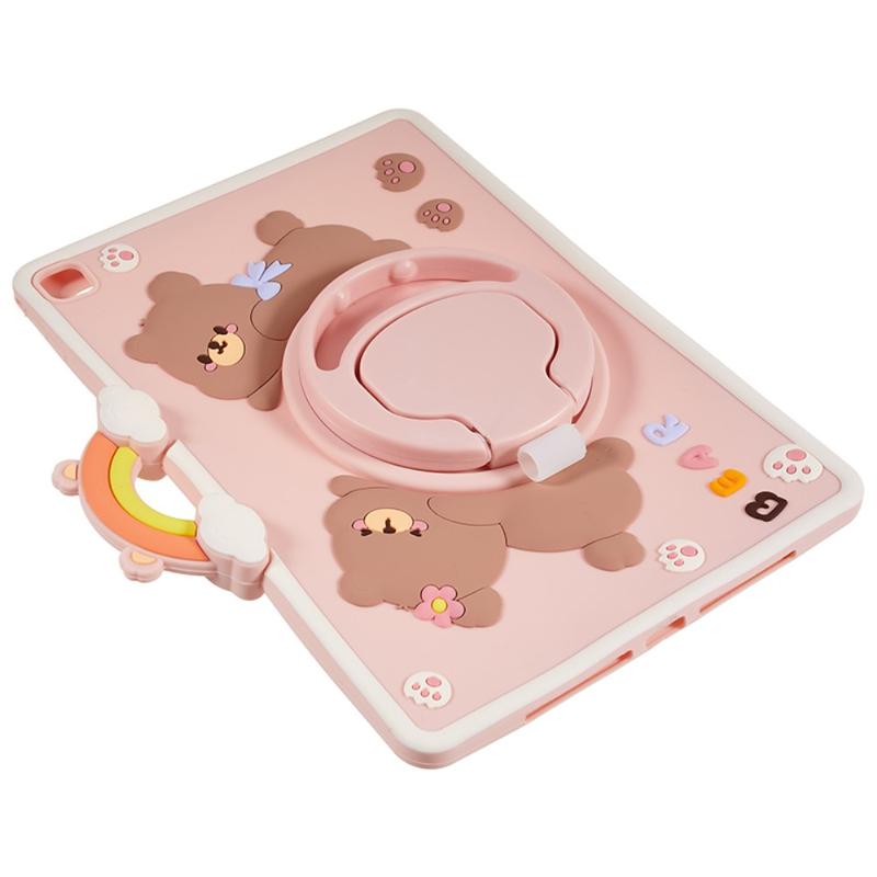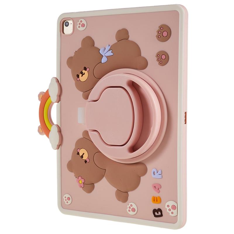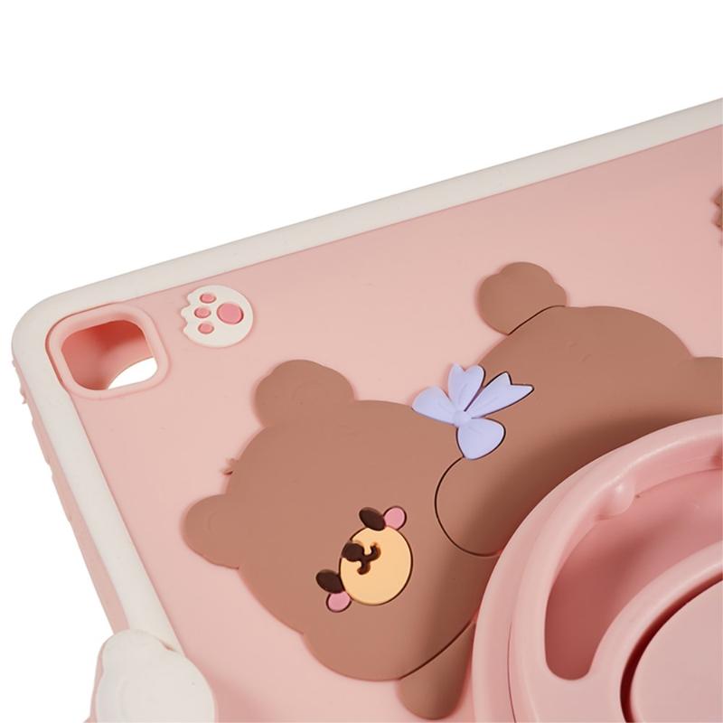 Capa de silicone com urso dos desenhos animados e suporte para iPad 9.7 (2017), iPad 9.7 (2018), iPad Air, iPad Air 2