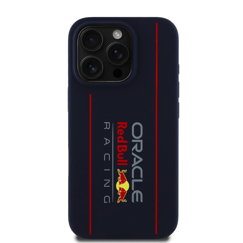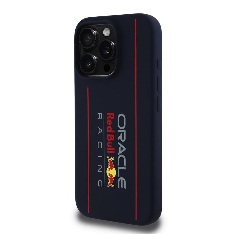 Capa de silicone líquida MagSafe com logótipo vertical da Oracle Red Bull Racing para iPhone 16 Pro