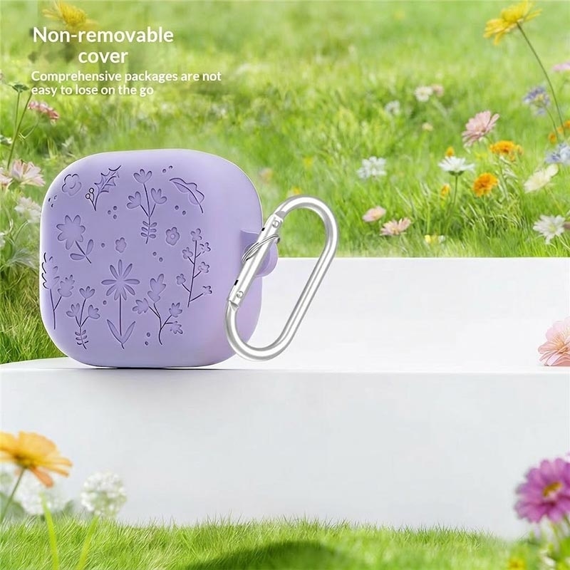 Capa de silicone com gravura floral, canetas de limpeza e mosquetão para Samsung Galaxy Buds4, Galaxy Buds4 Pro