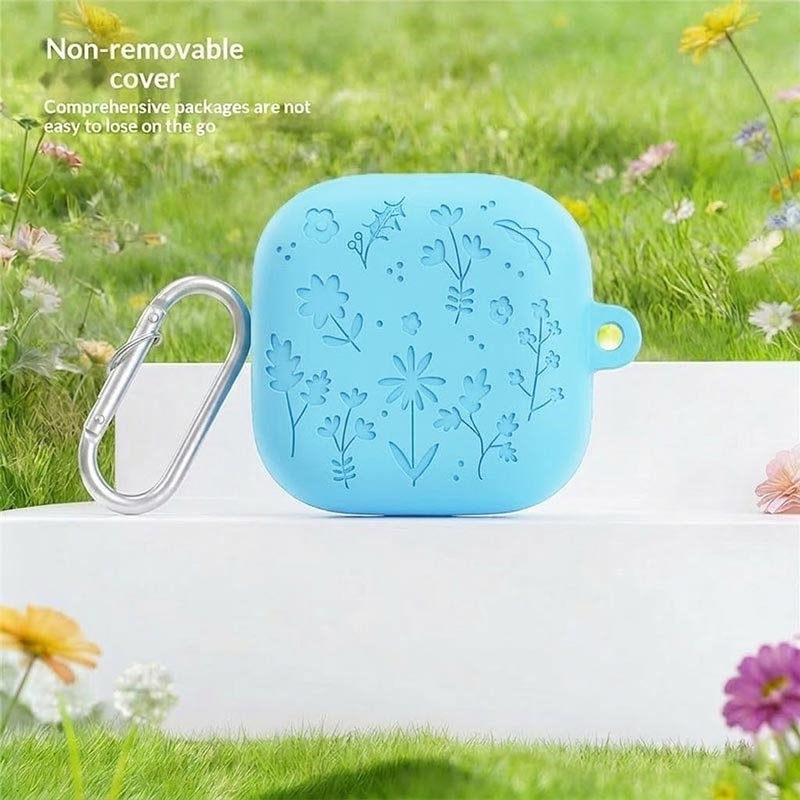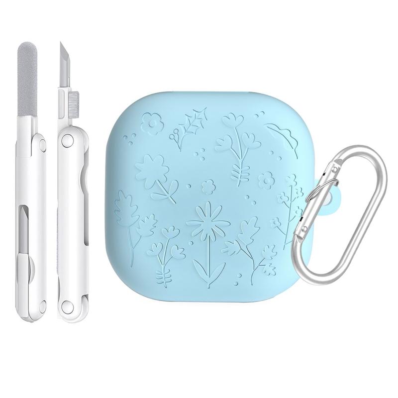 Capa de silicone com gravura floral, canetas de limpeza e mosquetão para Samsung Galaxy Buds4, Galaxy Buds4 Pro