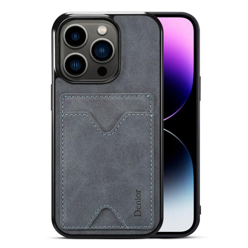 DENIOR para iPhone 14 Pro porta-cartões capa de telefone anti-riscos PU revestido de couro TPU estojo suporte de TPU