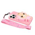 Capa de telefone para iPhone 14 Pro Max TPU com design de desenho animado capa à prova de choque de silicone com zíper capa de telefone com cordão