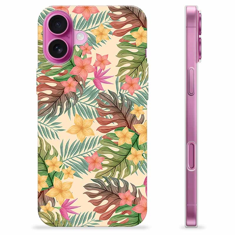 Capa de TPU - iPhone 16 Plus - Flores Cor-de-rosa