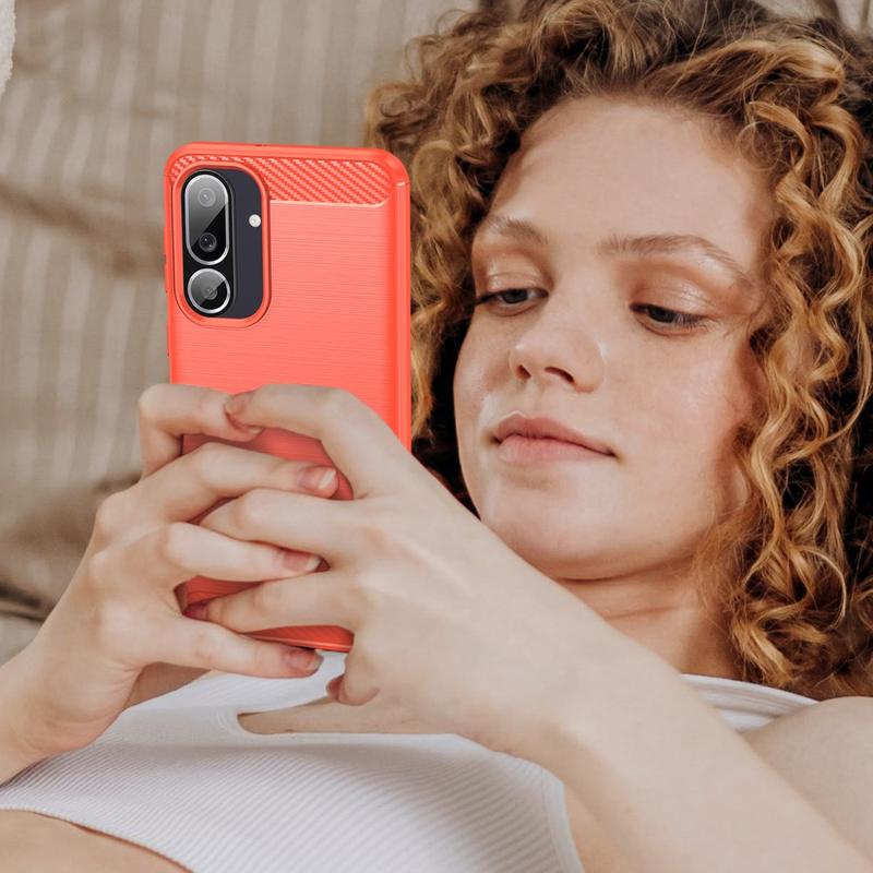 Dê ao seu Samsung Galaxy M56, Galaxy F56 a proteção elegante que merece com esta capa com textura de fibra de carbono escovada. Combinando um elegante acabamento escovado com um design protetor resistente, protege o seu dispositivo contra impactos e riscos diários, proporcionando uma aderência confortável.