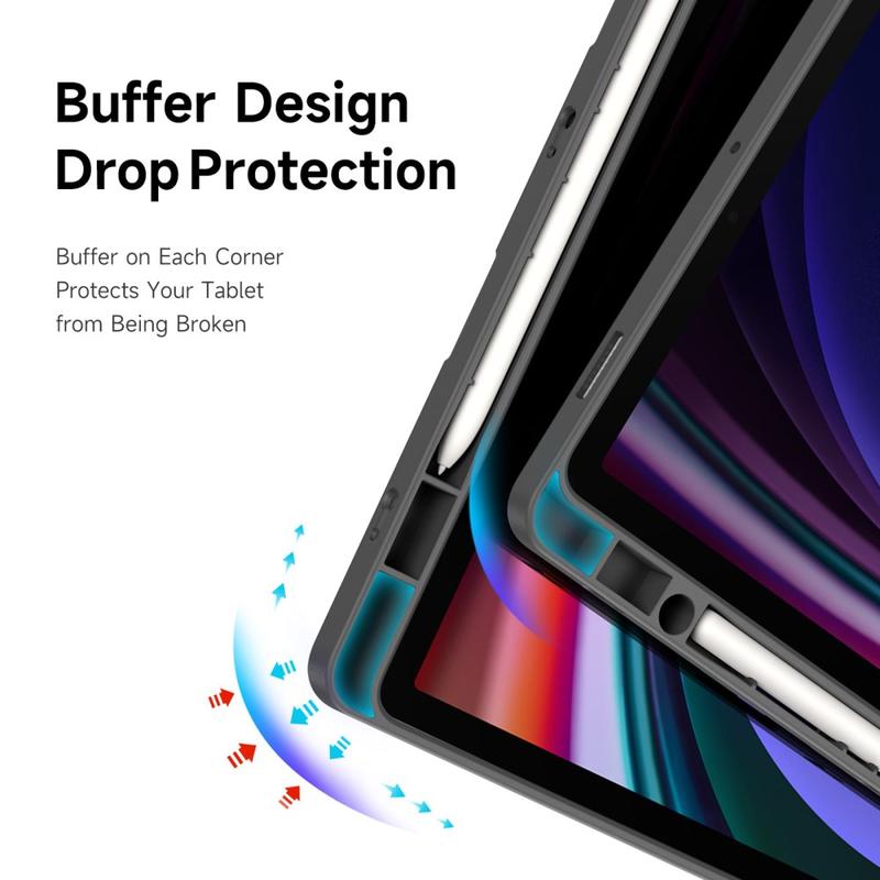 Ultra-fino: O exterior frontal fino, leve e suave ao toque é feito de couro PU de primeira qualidade, o interior sem riscos oferece uma excelente proteção e a estrutura em TPU + parte posterior em PC torna o seu tablet mais estável