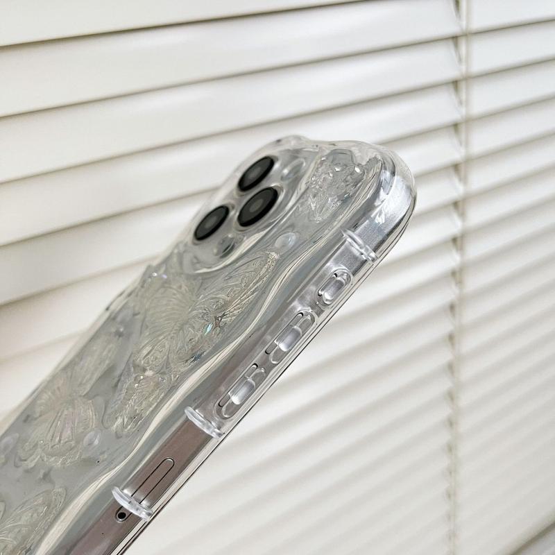 Transforme o seu iPhone 14 Pro numa peça de arte que pode ser vestida. Esta capa em TPU transparente exibe o acabamento original do iPhone 14 Pro, ao mesmo tempo que inclui borboletas 3D de sonho, contas de resina tipo pérola e flocos de estrelas dispersos. Os cantos reforçados com almofada de ar absorvem as quedas diárias e uma textura ondulada esculpida mantém o telemóvel estável na sua mão ou em secretárias escorregadias. Coloque-o, desfrute da táctilidade total dos botões e mantenha o carregamento MagSafe totalmente funcional - não é necessário sacrificar o estilo pela segurança.