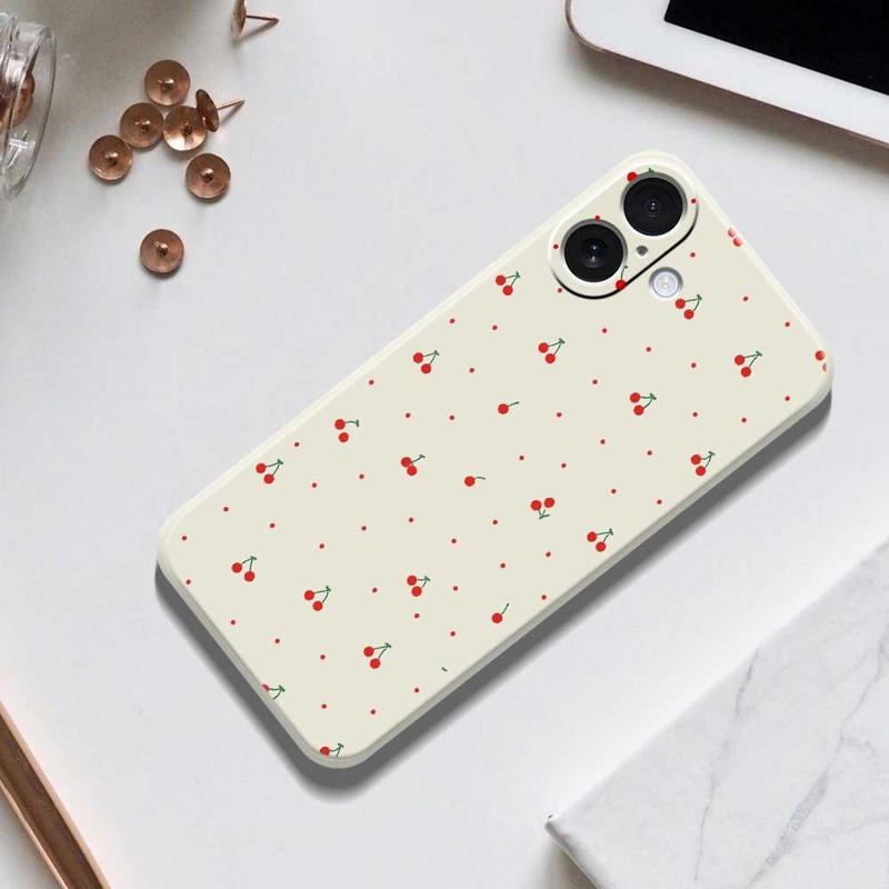 Capa em TPU com padrão cereja para iPhone 17 - Textura de silicone líquido de toque suave com proteção da câmara elevada