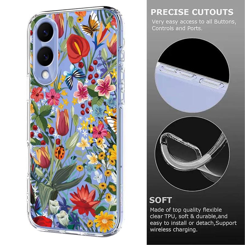 Transforme o seu Samsung Galaxy S25 Edge numa obra de arte portátil. A edição Floral envolve o seu telemóvel com uma lavagem de sonho de flores de alfazema e delicadas borboletas impressas com tintas de alta definição que resistem ao desbotamento. Fabricada em TPU flexível e absorvente de choques, a capa envolve todas as curvas do seu dispositivo, enquanto os rebordos elevados protegem o ecrã e as lentes da câmara dos choques diários. Um revestimento mate anti-manchas mantém o design nítido e o telemóvel sem impressões digitais, tudo isto sem bloquear o carregamento sem fios Qi.