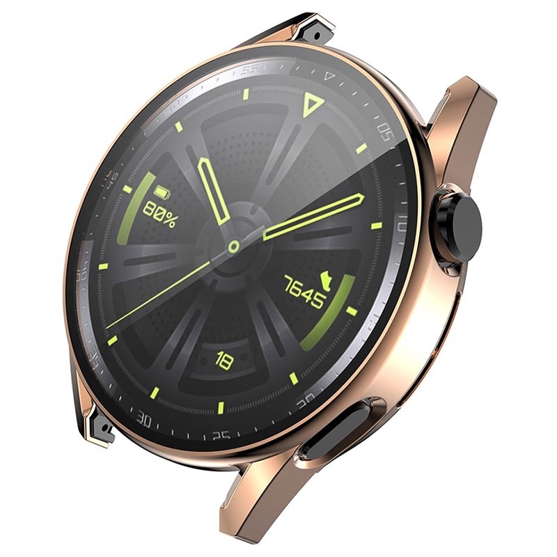O design 2 em 1 combina uma estrutura em policarbonato de alta qualidade com um protetor de ecrã de 9H. Assegura, deste modo, proteção contra pó, sujidade, desgaste e riscos. É fina e leve, acrescentando quase nenhum volume. A sua estrutura galvanizada brilha como o metal. O vidro temperado não afeta a sensibilidade do ecrã. Foi precisamente moldada com recortes para preservar a funcionalidade do Huawei Watch GT 3.