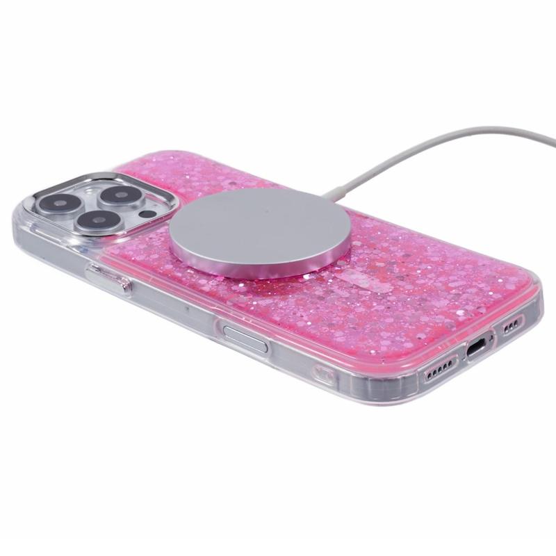 Capa epóxi com lantejoulas brilhantes compatível com MagSafe para iPhone 16 Pro Max